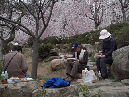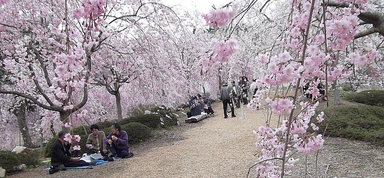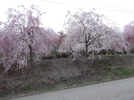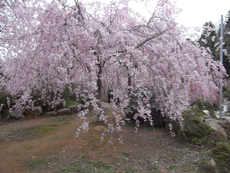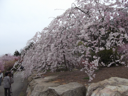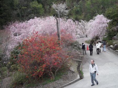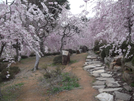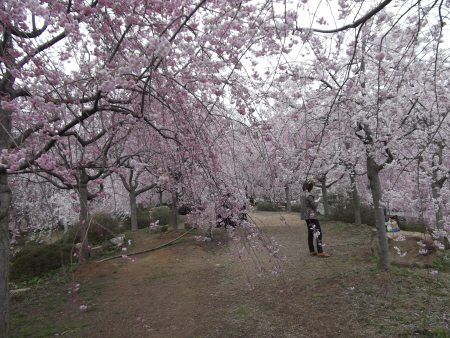 2万坪もあるといわれる広大な庭園に百数十本のしだれ桜が植えられている。その木もかなり育ち広大な庭園いっぱいに華麗に咲き乱れる様は一見の価値があります。個人の敷地ですが花見時には一般の人にも解放されています。