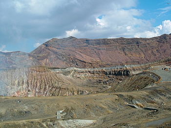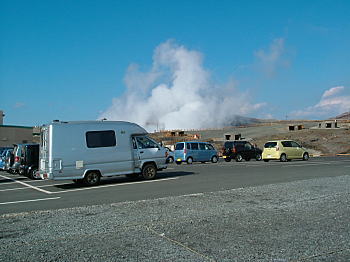 | 噴火口近くの駐車場。 噴火口からはもうもうと噴煙が上がっていた |