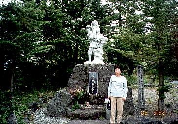 政井みねとその兄の像 若い政井みねは、女工として働く出稼ぎ先の信州で重い病にかかる。迎えに来た兄に背負われて飛騨へ帰る途中、ようやく難所の野麦峠にたどり着く。そこからは夢にまで見た懐かしい故郷の山並みが見える。政井みねは兄の背中で「ああ飛騨が見える」と言って息をひきとった。 |