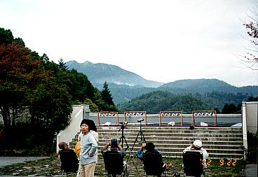 | 野麦峠記念館 | 乗鞍岳と野鳥を観察しているみなさん |