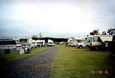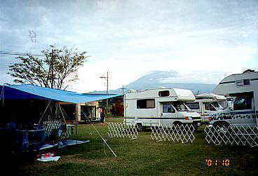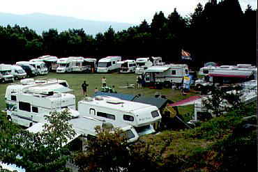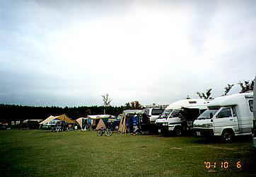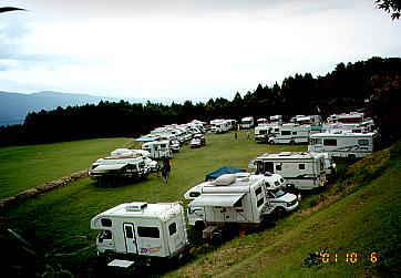 80台近くのキャンピングカーが集合したながおねオートキャンプ場。壮観な眺めです。