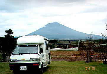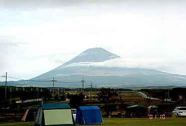 1日目、2日目は雲に隠れて見えませんでしたが(左側写真)、最終日早朝にようやく富士山が姿を現す。