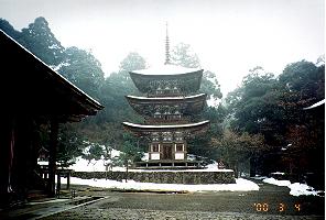 2日目は朝から冷たい雨。この朝は、9時起床とゆっくりする。土曜日なのになぜか道の駅の食堂は休み。 飯盒でご飯を炊き、ほかほかご飯と、前日残りのあじフライ、焼き海苔、柴漬け、みそ汁で朝食をとる。 10時40分に出発、湖東三山に向かう。 道の駅「近江母の郷」 湖東三山巡り 冷たい雨のせいか、観光客もまばら。湖東三山近辺は、まだかなりの残雪がある。西明寺、金剛輪寺、百済寺の順で巡る。各寺院とも1000年以上の歴史を持つ。山門、三重塔、本堂が早春の雨にかすみ、厳かな雰囲気を醸し出していた。本堂内には重要文化財に指定された見事な仏像や仏画がならび、間近に拝観できる。また、各寺院とも本坊にある名園古庭が素晴らしい。